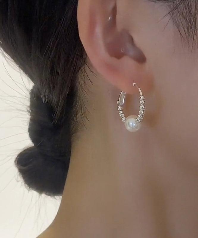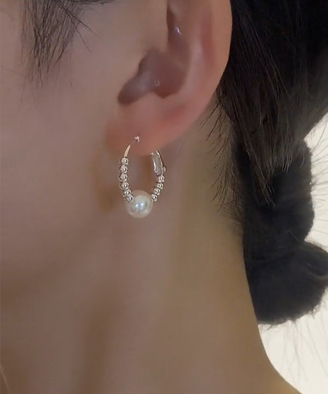 Pearl Earrings Broken Copper Hoop Art Silk Silver