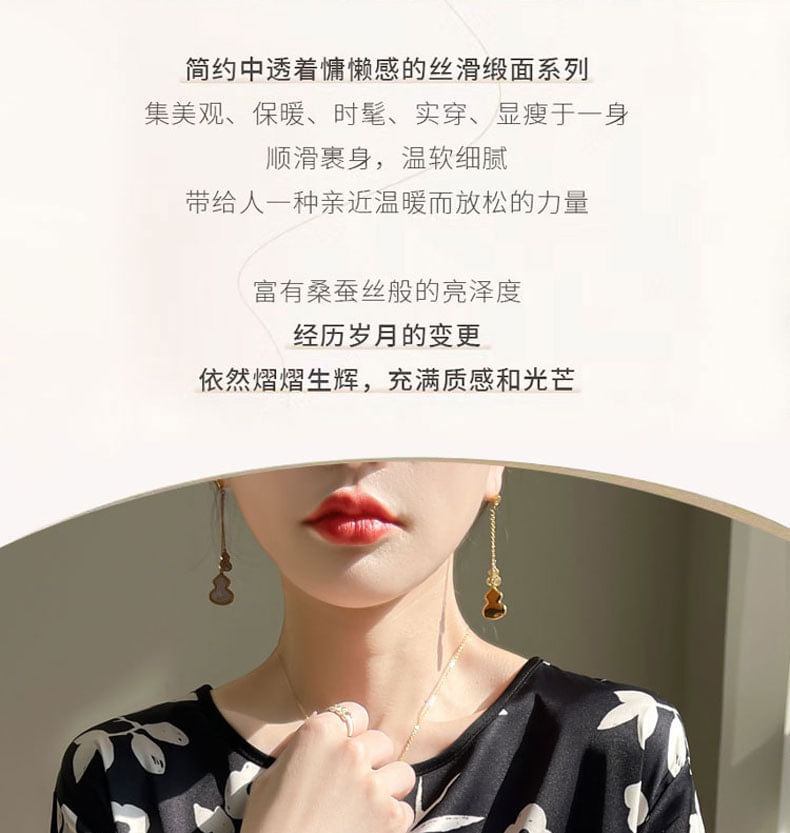 Short-Sleeve Crew Neck Floral Print Satin Tee