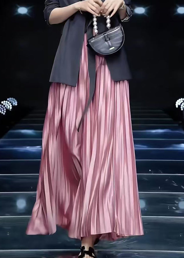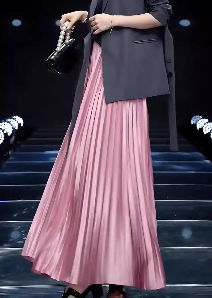 Solid Pink Wrinkled Skirts Cotton Loose Spring