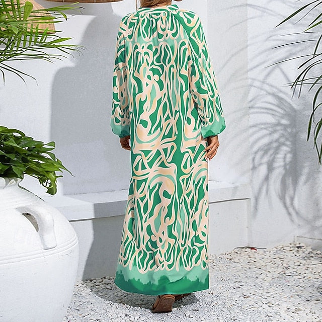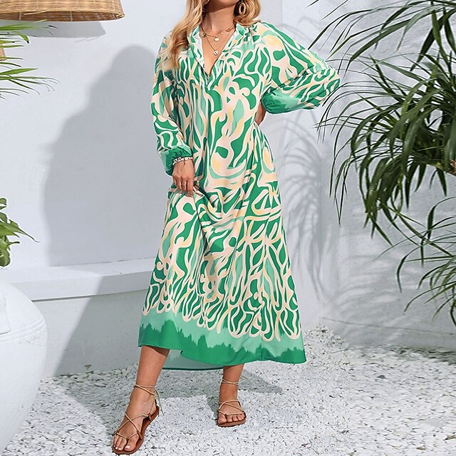 Dresses Type: Print Dress, Casual Dress, Fabric: Polyester, Gender: Women's, Occasion: St. Paddy's Day, St. Patrick's Day, Going out, Daily, Holiday, Design: Print, Buttons, Style: Elegant, Modern, Fashion, Print Type: 3D Print, Fit Type: Loose Fit, Festival: St. Paddy's Day, Dress Length Type: Long Dress Maxi Dress, Neckline: V Neck, Sleeve Length: Long Sleeve, Elasticity: Micro-elastic, Look After Me: Machine wash, Pattern: Graphic, Season: Summer,