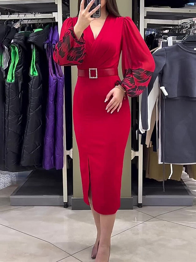 Dresses Type: Plain Dress, Casual Dress, Bodycon, Fabric: Polyester, Gender: Women's, Design: With Belt, Patchwork, Occasion: Sports & Outdoor, Street, Style: Casual, Fit Type: Regular Fit, Dress Length Type: Midi Dress, Neckline: V Neck, Elasticity: Micro-elastic, Look After Me: Wash separately, Machine wash, Season: Fall, Winter,