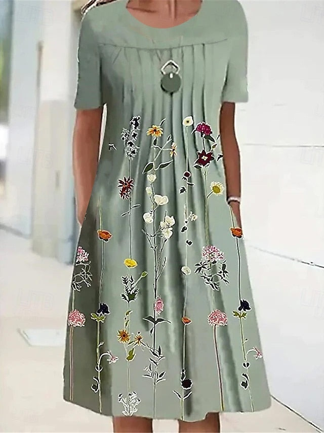 Dresses Type: Summer Dress, Casual Dress, Fabric: Polyester, Gender: Women's, Design: Print, Pocket, Occasion: Daily, Beach, Weekend, Style: Fashion, Modern, Fit Type: Regular Fit, Dress Length Type: Midi Dress, Neckline: Crew Neck, Sleeve Length: Short Sleeve, Elasticity: Micro-elastic, Look After Me: Machine wash, Pattern: Floral, Season: Summer,