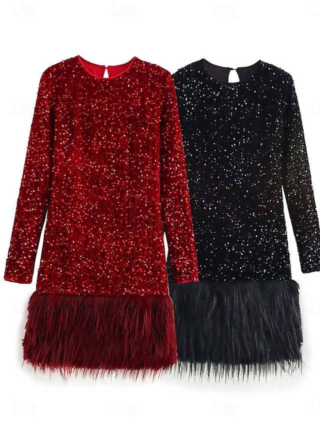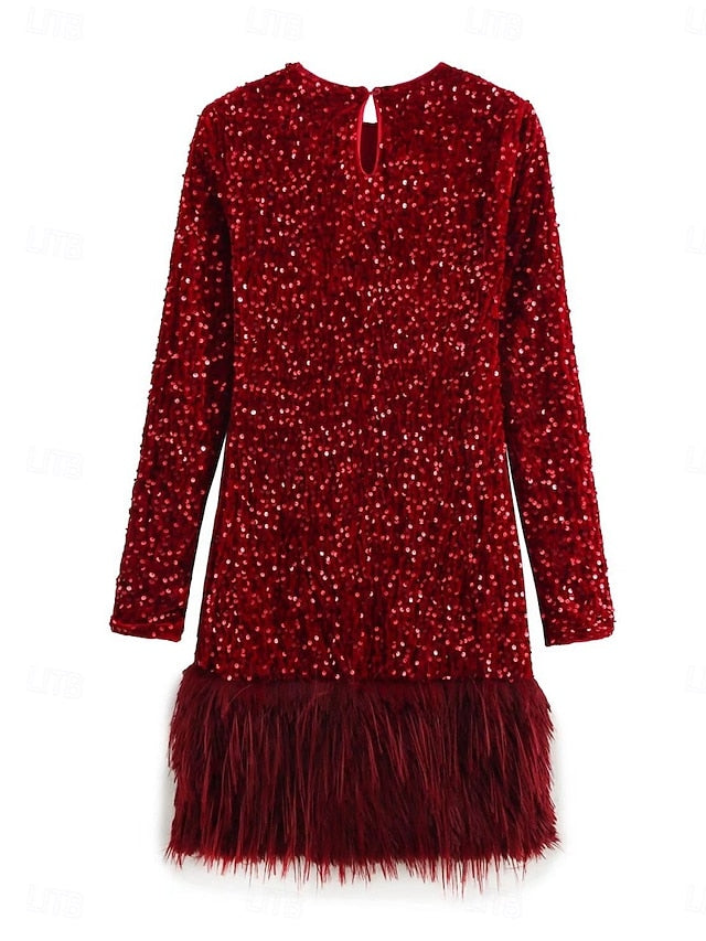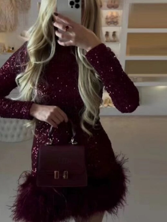 Dresses Type: Sheath Dress, Fabric: Polyester, Gender: Women's, Design: Feather, Sequins, Occasion: Wedding Guest, Cocktail Party, Party, Style: Casual, Fit Type: Regular Fit, Festival: Christmas, Dress Length Type: Mini Dress, Neckline: Crew Neck, Sleeve Length: Long Sleeve, Elasticity: Inelastic, Look After Me: Wash with similar colours, Dry clean only, Machine wash, Pattern: Plain, Season: Winter, Fall,