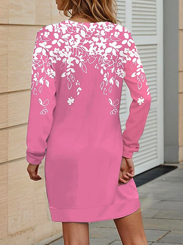 Dresses Type: Shift Dress, Fabric: Polyester, Gender: Women's, Design: Print, Patchwork, Occasion: Home, Going out, Outdoor, Style: Casual, Fit Type: Regular Fit, Dress Length Type: Mini Dress, Neckline: Crew Neck, Sleeve Length: Long Sleeve, Elasticity: Stretchy, Look After Me: Machine wash, Pattern: Graphic, Floral, Season: Spring, Winter, Fall, Front page: FF, Production mode: Y-Back Suspender,