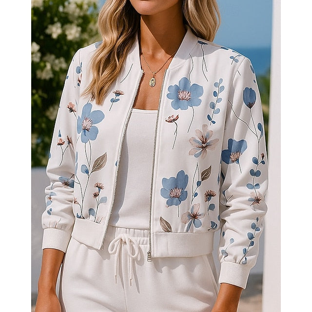 Gender: Women's, Sports Clothing Sub Category: Full Zip Jacket, Outdoor Recreation Coatv, Clothing Type: Top, Activity: Outdoor, Travel, Sports, Occasion: Sports, Athleisure, Gyms, Workout, Season: Fall, Function: Fashion, Fabric: Polyester, Sleeve Length: Long Sleeve, Neckline: Stand Collar, Pattern: Floral Print, Look After Me: Wet and Dry Cleaning, Washable, Bust (cm): S:106;M:110;L:116;XL:122;XXL:128, Length (cm): S:49;M:50;L:51;XL:52;XXL:53,