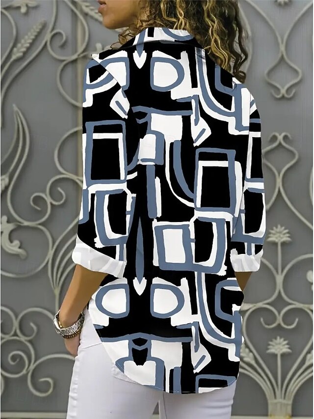Fabric: Polyester, Tops Type: Shirt, Blouse, Gender: Women's, Design: Print, Buttons, Occasion: Work, Daily, Style: Casual, Category: Shirt, Fit Type: Regular Fit, Neckline: Shirt Collar, Sleeve Length: Long Sleeve, Elasticity: Inelastic, Look After Me: Machine wash, Top Length: Regular Tops, Pattern: Plaid, Polka Dot, Season: Spring, Winter, Fall,