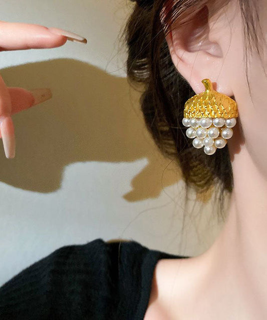 Modern White Sterling Silver Overgilid Pearl Strawberry Drop Earrings LY7847