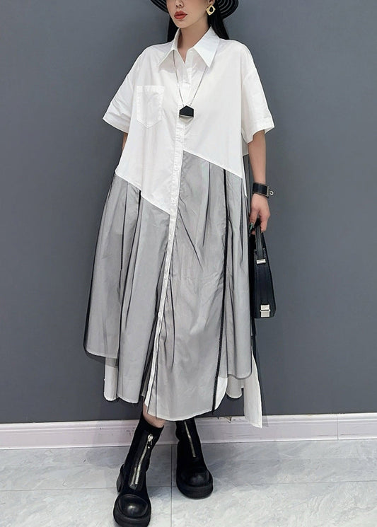 2024 Summer Peter Pan Collar Wrinkled Patchwork Shirts Dress AO1018
