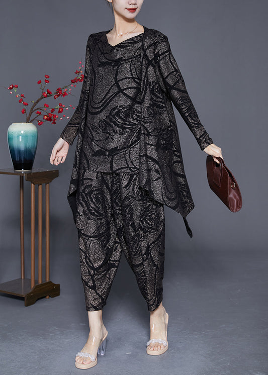 Elegant Slash Neck Oversized Print Silk Three Pieces Set Spring LY3655