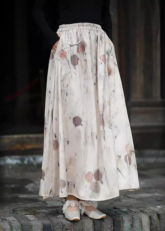 2024 New Print Pockets Elastic Waist Silk Skirts Summer LK002