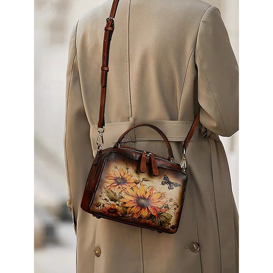 – Sunflower Print Vintage with Handbag Leather and Butterfly