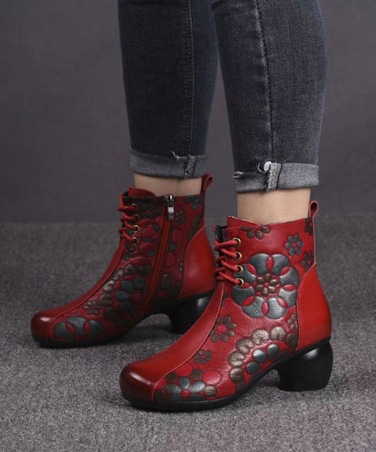 Brown Chunky Cowhide Leather Comfortable Splicing Boots Embossed ML1706