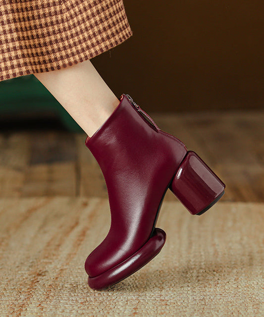 Coffee Splicing Handmade Cowhide Leather Chunky Boots ML1720