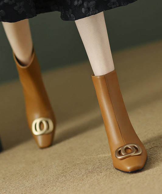 French Brown Cowhide Leather Splicing Boots ML1716