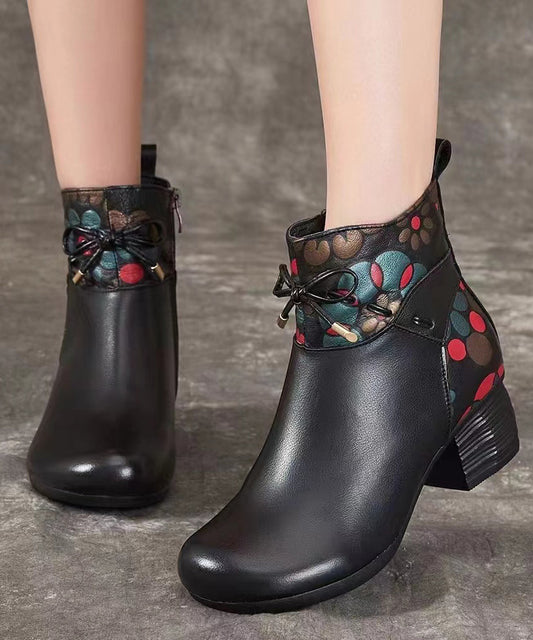 Comfortable Splicing Boots Black Retro Print Cowhide Leather ML1703