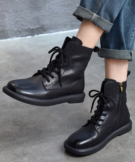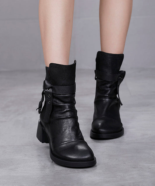 Black Splicing Stylish Cowhide Leather Chunky Boots ML1715