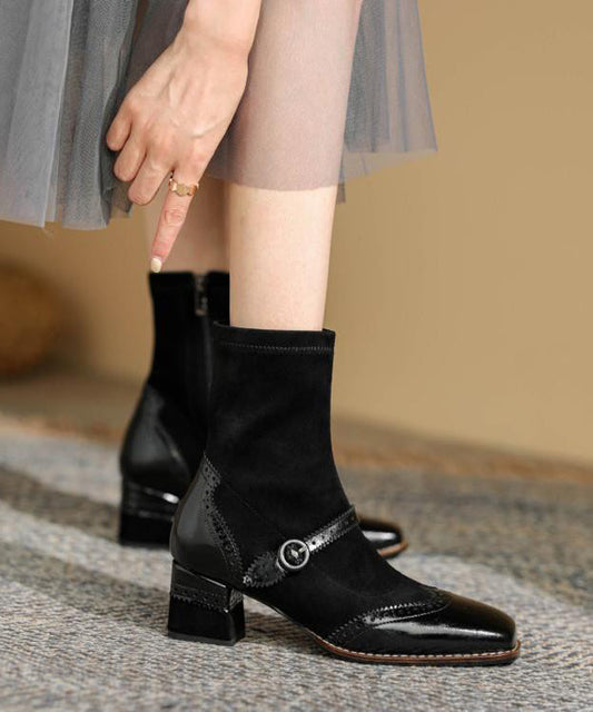 Black Boots Chunky Suede Classy Splicing Zippered ML1722