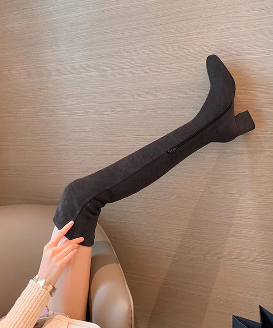 Stylish Khaki Velour Zippered Splicing Chunky Knee Boots ML1718