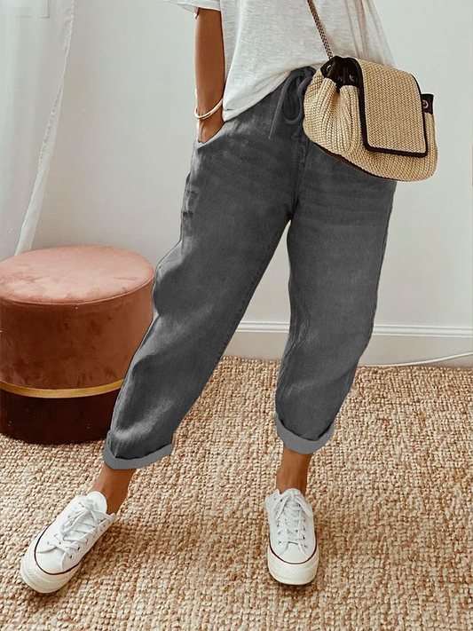 Cotton Casual Plain Paperbag Waist Wide Leg Pants WX96