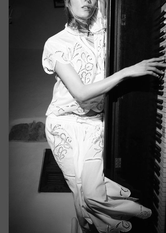 Pieces Skirts Cotton And White Out Hollow Set Loose Shirts Two