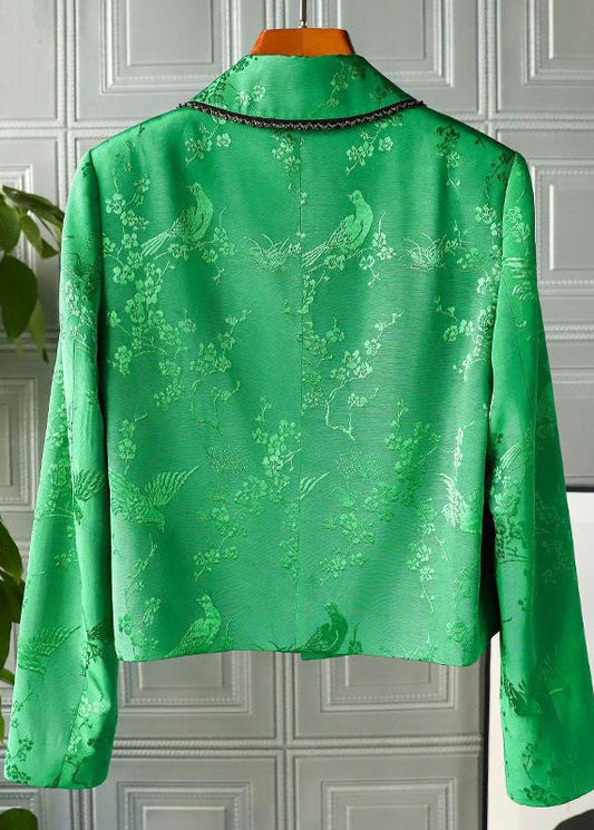 Vintage Green Peter Pan Collar Chinese Button Print Patchwork Silk Coats Spring LY4687