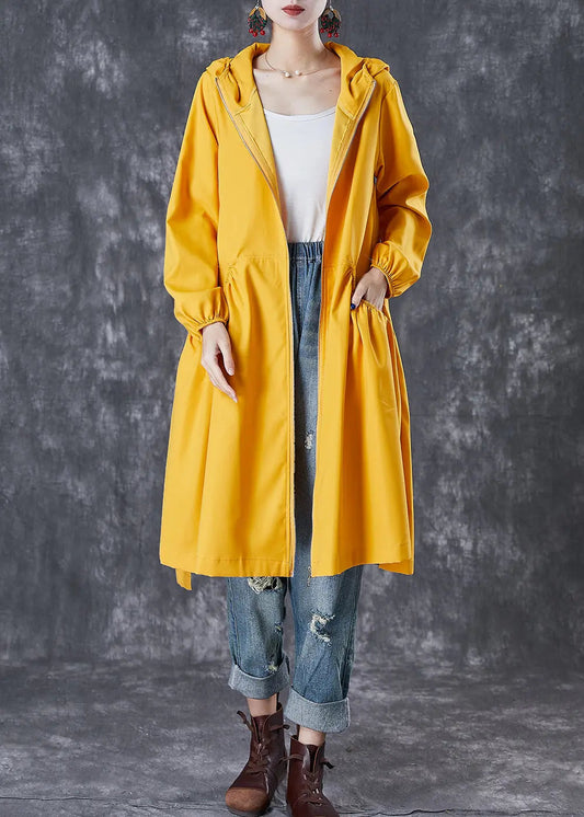 French Yellow Hooded Pockets Trench Coats Fall ML2984