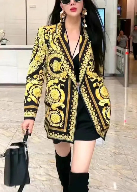 French Yellow Peter Pan Collar Print Patchwork Cotton Coats Fall ML3006