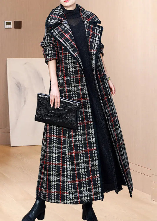 Unique Pink Plaid Peter Pan Collar Pockets Patchwork Woolen Coats Winter ML2715