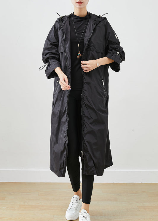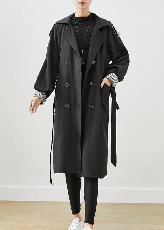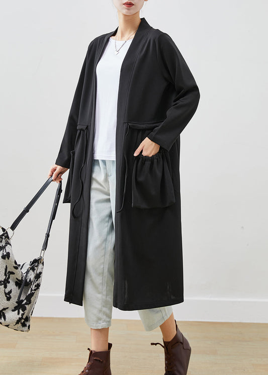 Classy Black Drawstring Pockets Cotton Trench Coats Fall ML2464