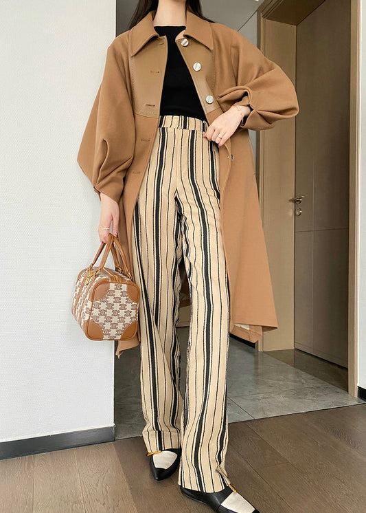 Classy Khaki Double Breast Wrinkled Cotton Coats Fall ML2453