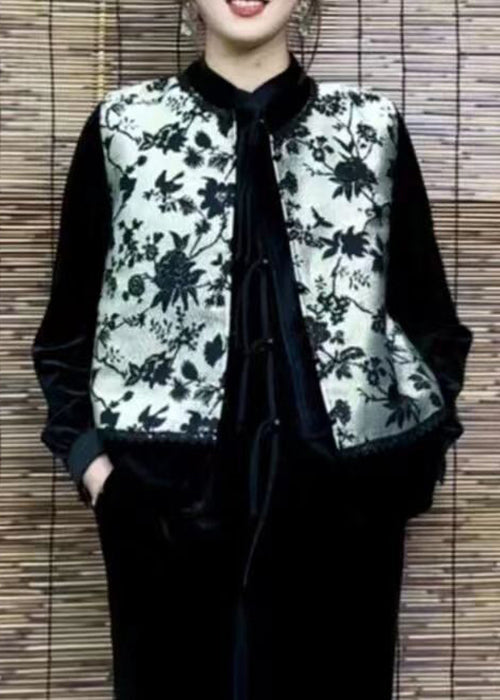 French Cyan Color Print Button Patchwork Silk Velour Waistcoat Sleeveless ML2439