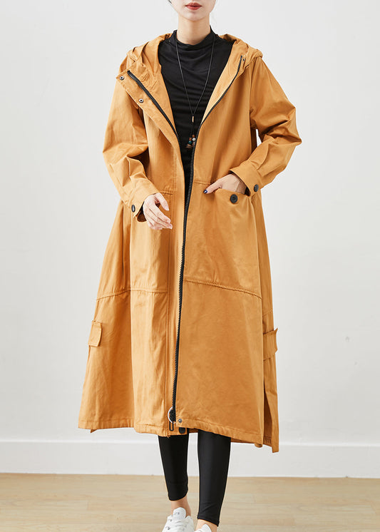 Khaki Loose Cotton Trench Coats Hooded Pockets Fall ML2480