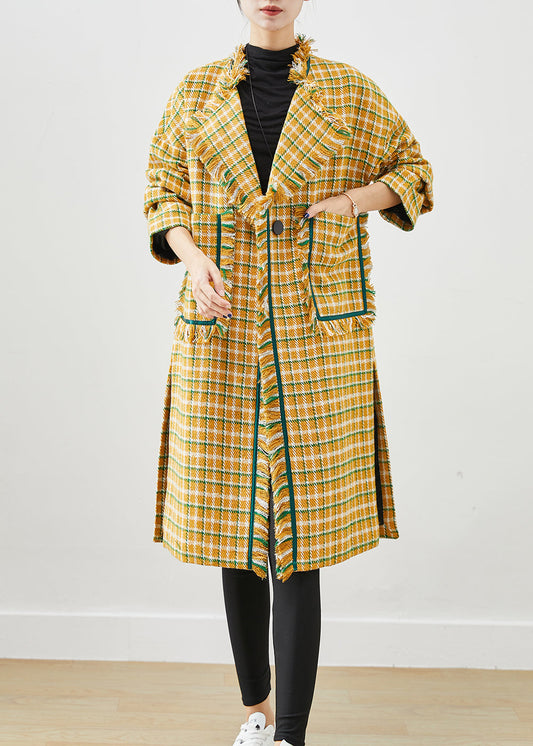 Modern Yellow Tasseled Plaid Cotton Coat Fall ML2446