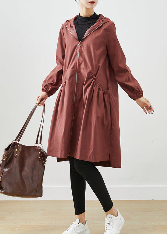 Plus Size Chocolate Hooded Pockets Cotton Coats Fall ML2427