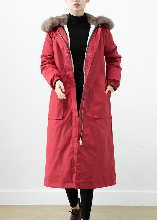 Red Warm Otter Rabbit Hair Lined Women Coats Fox Collar Witner ML2457