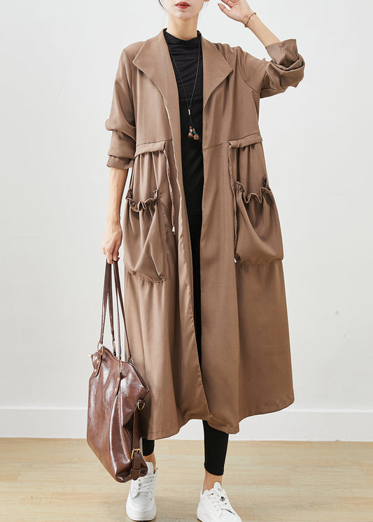 Simple Coffee Cinched Ruffled Pockets Cotton Coat Fall ML2426