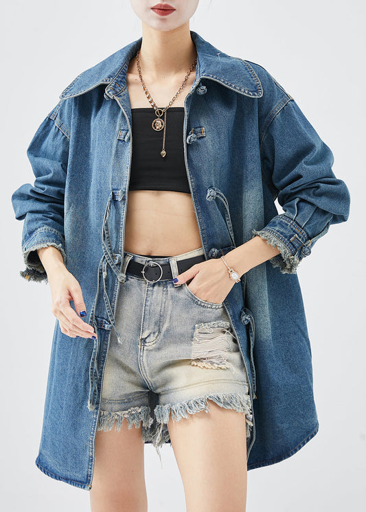 Art Blue Tasseled Chinese Button Denim Coats Fall ML2014