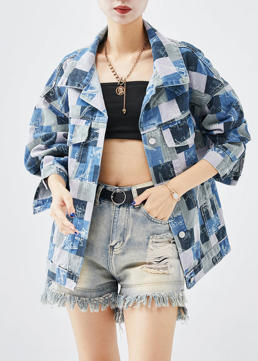 Casual Colorblock Oversized Plaid Denim Coats Fall ML2003