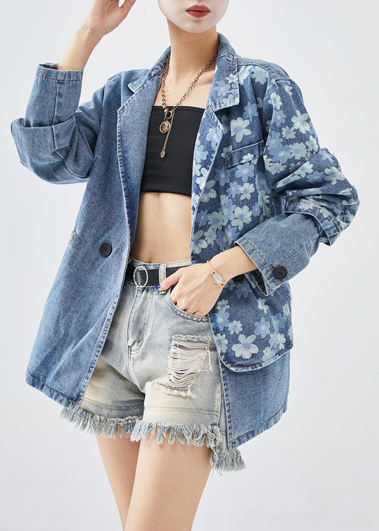 Fine Denim Blue Asymmetrical Print Cotton Coats Fall ML2000