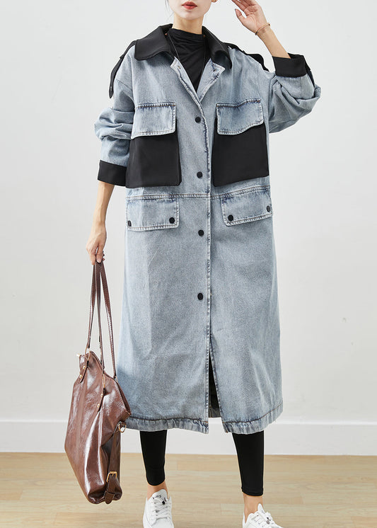 Boutique Blue Oversized Patchwork Cotton Coats Fall ML2005