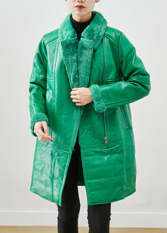 Natural Green Zip Up Patchwork Duck Down Faux Leather Coats Winter ML1928