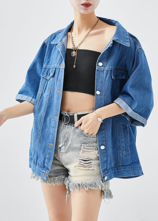 Plus Size Denim Blue Oversized Cotton Coats Half Sleeve ML1991