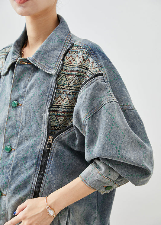 Plus Size Blue Oversized Pockets Applique Denim Coats Fall ML2008
