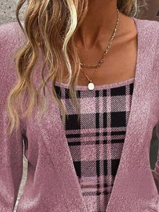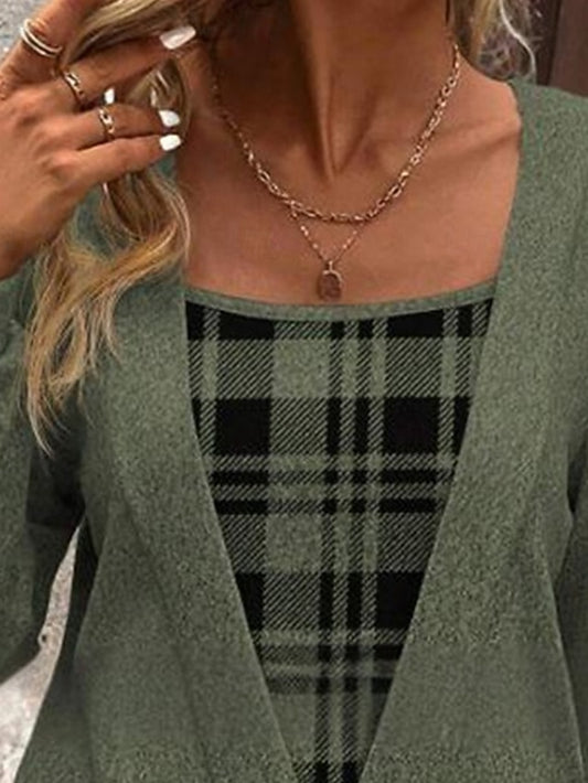 Women's Shirt Blouse Patchwork Print Plaid Stylish Basic