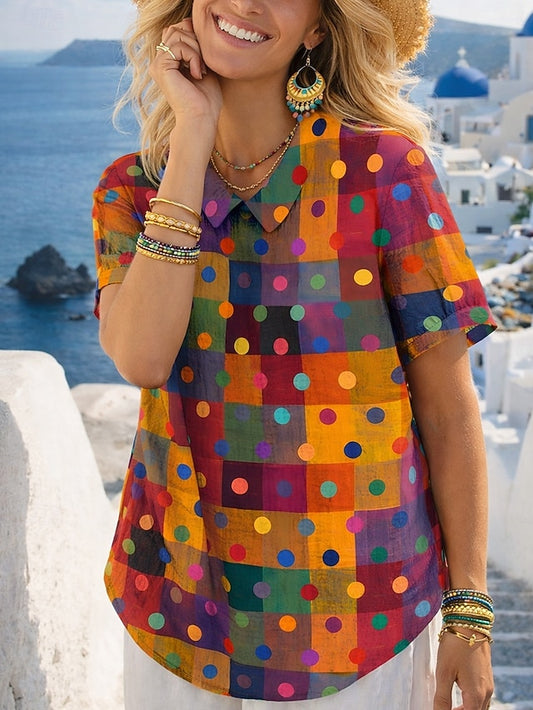 Women's Shirt Blouse Buttons Print Plaid Polka Dot Casual