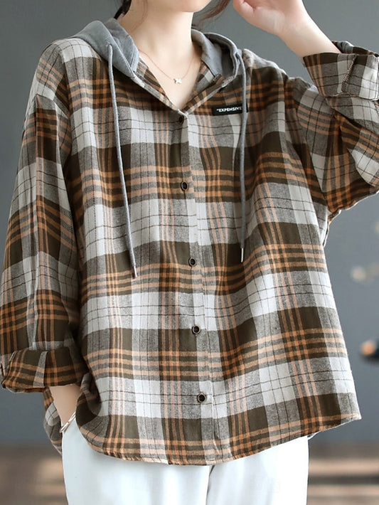 Women's Shirt Graphic Plaid Elegant Vintage Tropical Long