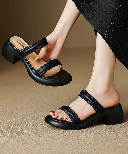 Heels High Black Sandals Splicing Toe Leather Faux Peep