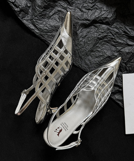 Sandals Black Out Leather Splicing Cowhide Hollow Heel High Chic