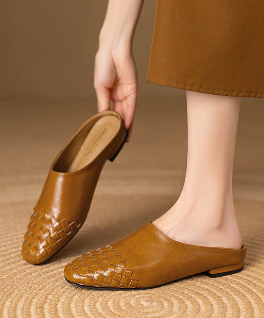Classy Leather Splicing Comfy Slide Black Sandals Cowhide