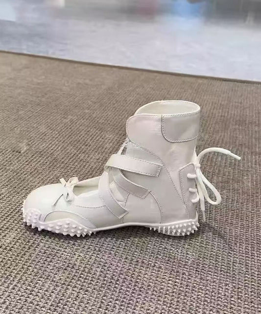 Nude Up Fashion Lace Bow Leather Shoes Faux Splicing Flats